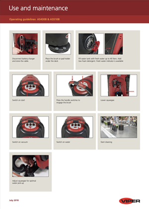 Yeni VIPER AS430 ve AS510, orta büyüklükteki alanların temizliği için mükemmel bir iticili zemin bakım makinesidir.