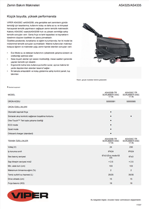 VIPER AS4325 - İticili Zemin Temizlik Makineleri ÜRÜN ÖZELLİKLERİ