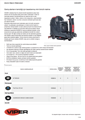 VIPER AS530R - Binicili Zemin Temizlik Makineleri ÜRÜN ÖZELLİKLERİ