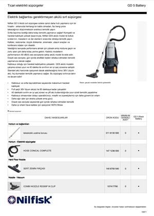 NILFISK GD5 BATTERY - Ticari Vakum Makineleri DOKÜMANLAR