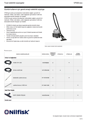 NILFISK VP300 ECO - Ticari Vakum Makineleri DOKÜMANLAR