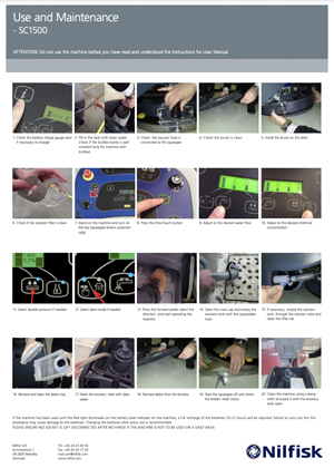 SC1500 ayakta kullanılan tasarımı sayesinde üstün bir verimlilik, kullanım kolaylığı ve performansına sahip olan SC1500, kalite ve güvenilirlik olarak Nilfisk geleneğini sürdürmektedir.
