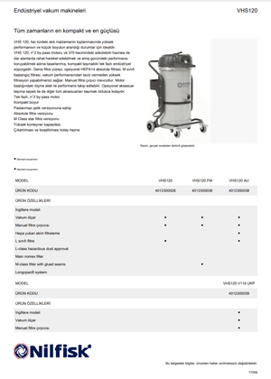 NILFISK VHS120 - Endüstriyel Vakum Makineleri ÜRÜN ÖZELLİKLERİ
